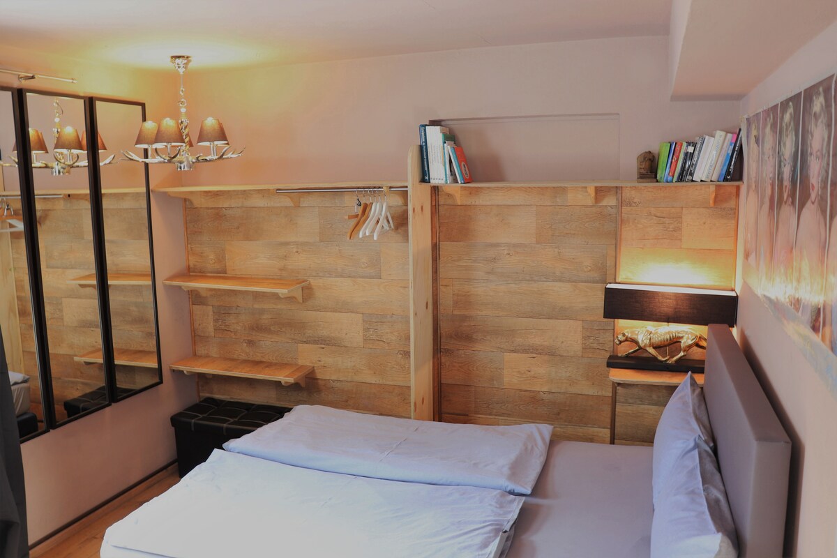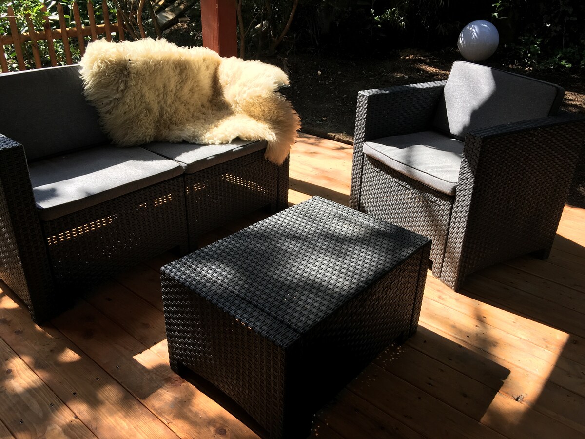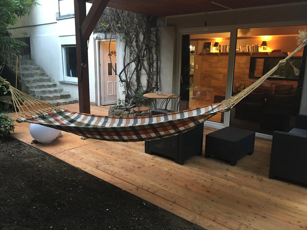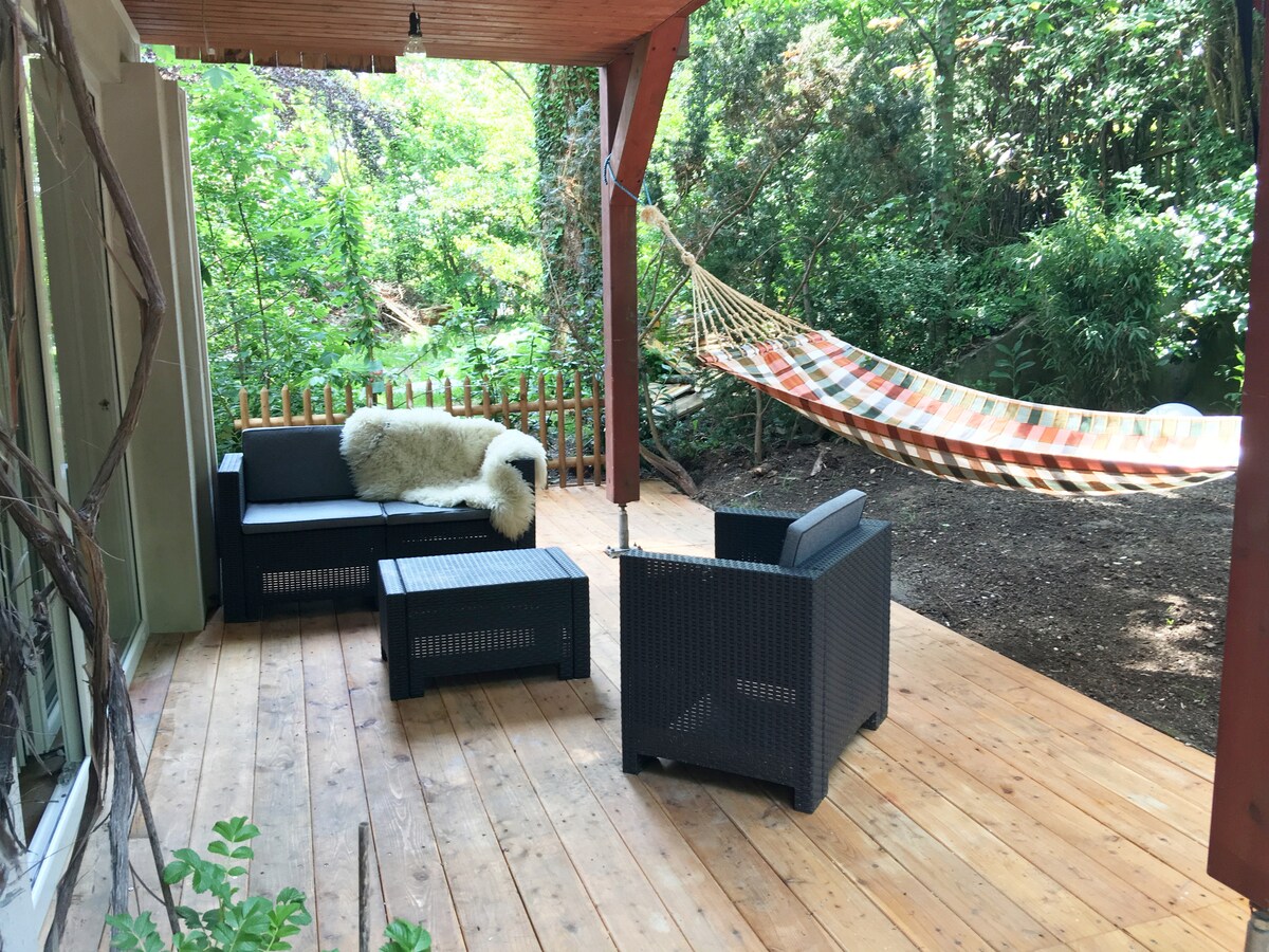 Gräfelfing2 rooms flat in chalet style, private garden and fast connection to the Autobahn, bus and train. The 75 sqm big condo with it's private entrance, sunlounger, design-furniture, luyury bed, Flatscreen, Internet, dishwasher, library and leather-couch is only a short hop from the next train and busstation. Within 15 minutes one is in the city centre of munich, the Marienplatz, Karlsplatz (Stachus) or the main station.